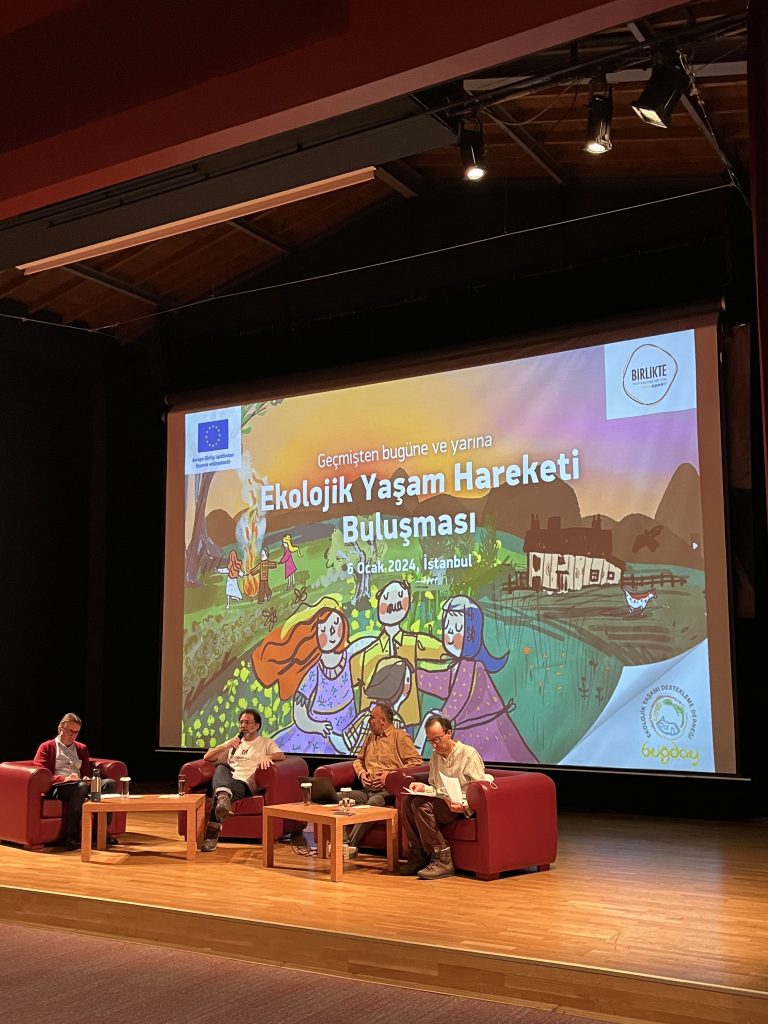 Öğleden sonraki ilk oturumda ise Buğday Derneği Genel Müdürü Batur Şehirlioğlu, Good4Trust kurucusu Dr. Uygar Özesmi ve Dört Mevsim Ekolojik Yaşam Derneği bünyesinde, agroekolojik gıda sistemlerini teşvik eden ve kır-kent bağlantılarını güçlendirmeyi amaçlayan çeşitli çalışmalar yapan Ceyhan Temürcü “Ekolojik Yaşam Hareketi’nin yönü nereye doğru olmalı? Örgütlenmenin, ağların önemi, işbirlikleri ve dayanışma için neler yapabiliriz?” sorularını yanıtladı. Oturuma Batur Şehirlioğlu, topluluk içi farklılıkların öneminden söz ederek başladı. Farklı alanlardan, farklı coğrafyalardan gelen insanların bir araya gelip etkileşimde bulunmasına duyulan ihtiyacın önemini vurgulayan Şehirlioğlu, sivil topluma niçin yeni insanların katılamadığının sorgulanması gerektiğini belirtti. Ardından, konuşmasında döngüsel ekonominin sıkça altını çizen Uygar Özesmi, günümüz krizlerinin esas nedeninin ekonominin örgütleniş biçimi olduğunu ifade etti. Örgütlenmeye kaynak ayırmanın ve yerelleşmenin öneminden söz eden Özesmi, kurulan yönetişim sistemlerinin basit ve eğlenceli olması gerektiğini söyledi. Ardından, konuşan Ceyhan Temürcü, modernizm ideolojisinin topluluk bağları üzerine etkisini anlattı. Tahakküm mekanizmalarının ortadan kaldırılması ve toplulukların dışsal baskılardan arındırılması gerektiğinin altını çizdi.