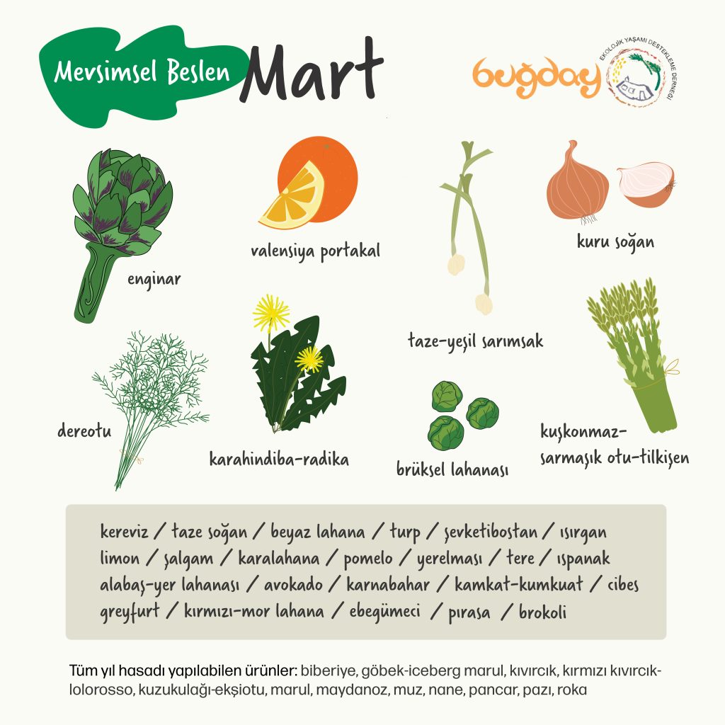 Alışveriş listenizi hazırlarken Mevsimsel Beslen Takvimi’nden taze sebze ve meyvelerin hasat dönemlerini kontrol edebilirsiniz. Hasat takvimlerinin ürünün yetiştirildiği coğrafya ve ürün çeşidine göre değiştiğini göz önünde bulundurup, yiyeceklerinizin nerede ve nasıl yetiştirildiğini üreticisine sorarak sofranıza gelen gıdanın sorumluluğunu alabilirsiniz.